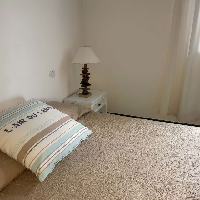 Deux à quatre personnes, 58 m², séjour avec banquette lit 160, chambre lit 140 avec bureau, salle à manger avec cheminée et cuisine équipée (lave linge, lave vaisselle), salle de bain avec bain bouillonnant, double lavabo, douche, WC, téléphone direct, télévision, grande terrasse avec meubles de jardin. Climatisation.